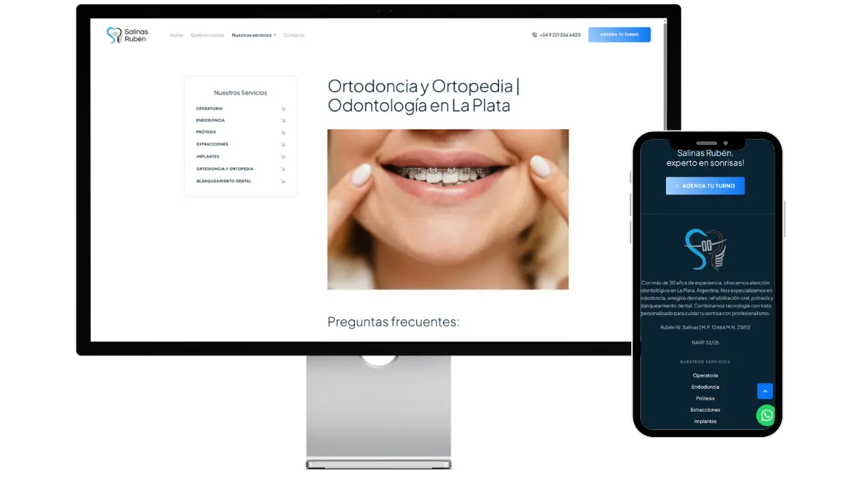 El consultorio del odontólogo Rubén Salinas, ubicado en La Plata, se dedica a ofrecer servicios odontológicos de alta calidad, centrados en la salud y el bienestar bucal de sus pacientes. Con una trayectoria reconocida en la ciudad, el Dr. Salinas buscaba mejorar su presencia digital para atraer a más pacientes. Identificó la necesidad de optimizar su página web institucional, así como de gestionar adecuadamente su perfil en Google My Business.